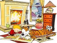 So once again this is an update for our customers that, despite the wintery conditions, our store is open today and will be until about 6 o’clock tonight. 7th street looks pretty clear but our side streets are a bit icy. We hope to have the books out on time for everyone tomorrow. Check the blog again in the morning for updates. Until then, come by and grab a book to cozy up with next to the fire. Just like Calvin and his friend.