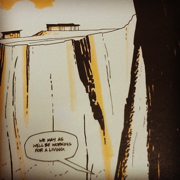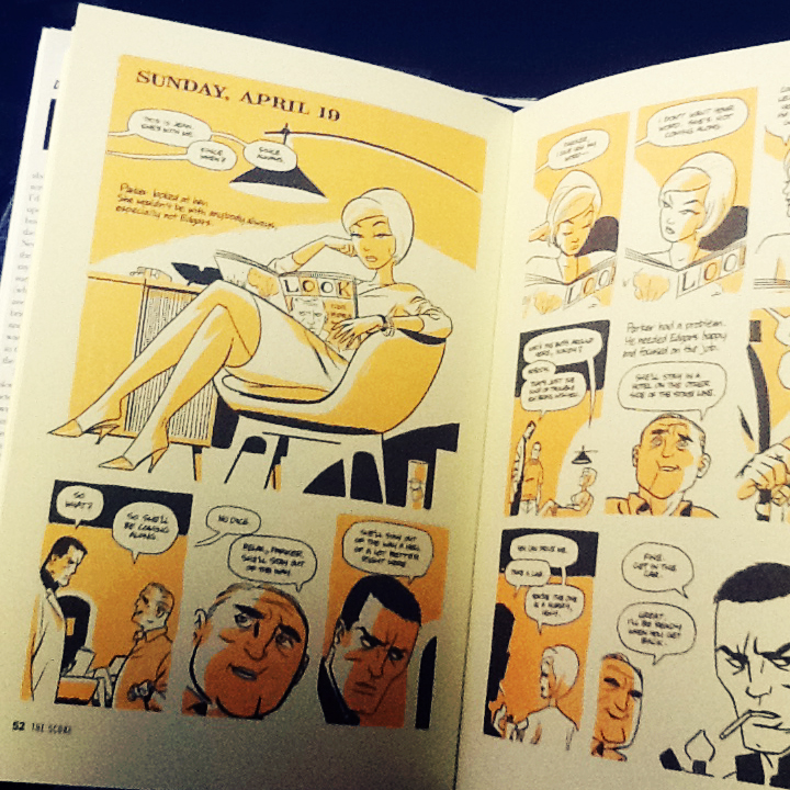 The Score tells the story of one single crime, a major heist. This is a complete, stand alone story. You just need to know two things: the main character Parker is financially independent and no longer has to steal for a living, but if he doesn’t perform a heist now and then, in his private life, his um, gun tends to jam up. And you need to know that Parker is not a likable guy at all. These are not crooks with hearts of gold and a twinkle in their eye ala Danny Ocean and his crew. As a reader, you should want to see Parker fail and go to jail and maybe die but the opposite occurs and you end up pulling for him to succeed. Why? Because of the remarkable turns of phrase of Richard Stark’s prose and the incredible artwork and storytelling of Darwyn Cooke.